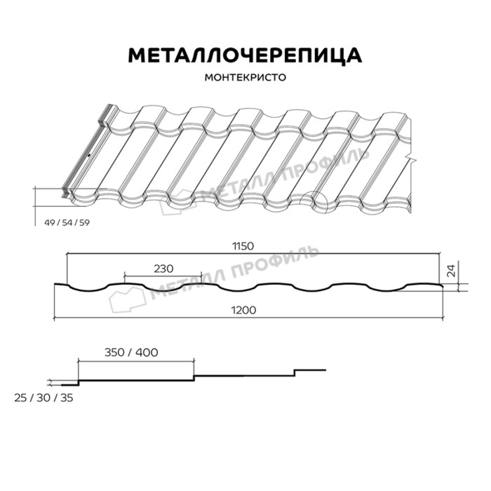 Металлочерепица Металл-Профиль Монтекристо-ML 0,5 PURETAN® RR 29 Вишня