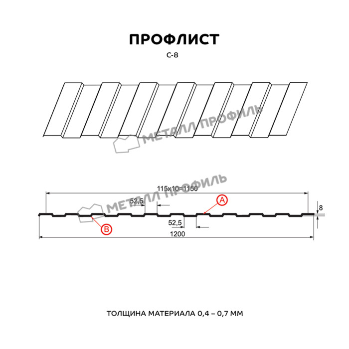 Профлист Металл Профиль С-8 0,5 NormanMP RAL 9003 Белый | B